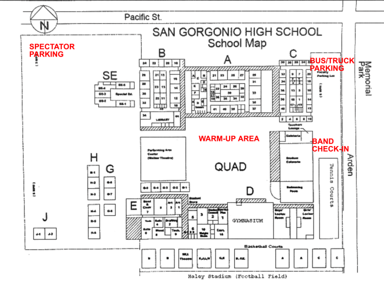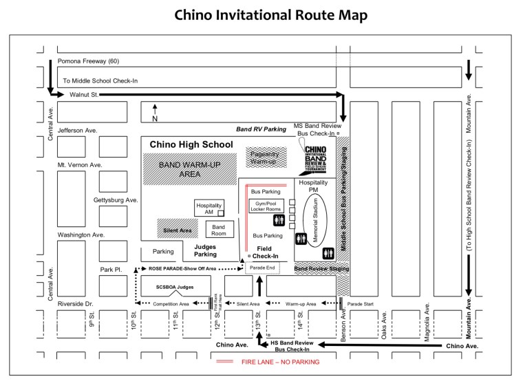 Busses and equipment trucks will be parked ON Mustang Way in front of the school (the road is closed to traffic other than band traffic). You will be given space next to your vehicles to unload etc. NO PLAYING IN THIS AREA!!!! THE STADIUM IS VERY CLOSE!!! We will allow your busses, equipment trailers, a Director vehicle, and any vehicles that HAVE band equipment in them to park with the busses. Parents, and staff will not be permitted to park in this area, and MUST park in the spectator parking.