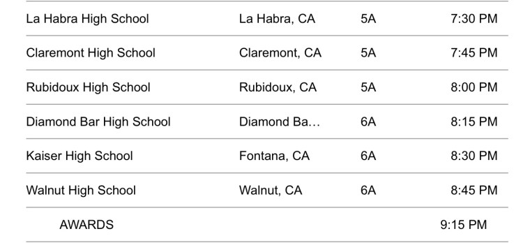 Spectator admission is $10.00. Under 12 is $5.00. Programs inside the competition will be $2.00. Admission gates will open 1 hour prior to the start of the first band’s performance. (2:30 pm) The spectator entrance is located next to the main office of the school. We accept Cash, Debit / Credit at admission. NO CHECKS