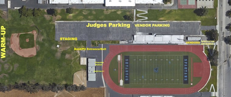 PLEASE NOTE THAT NO FOOT TRAFFIC OTHER THAN BANDS WILL BE ADMITTED THROUGH THE MAIN FIELD ENTRANCE GATE. ALL SPECTATORS AND RE-ENTERING BANDS / STAFF MEMBERS ETC. MUST USE THE SPECTATOR ENTRANCE. NO EXCEPTIONS.